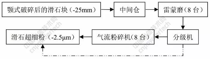 ▲遼寧某滑石礦超細粉碎生產原則流程